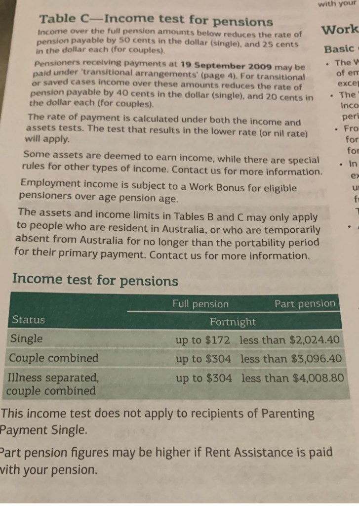 One National Work Place System is Equal to One National Wage and that’s is 50% of the Chart C income test for Pensions